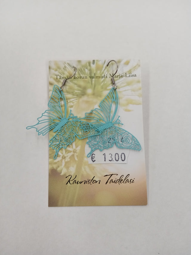 Keveä metallinen käsityönä valmistettu perhoskorvakoru. Nikkelivapaat.