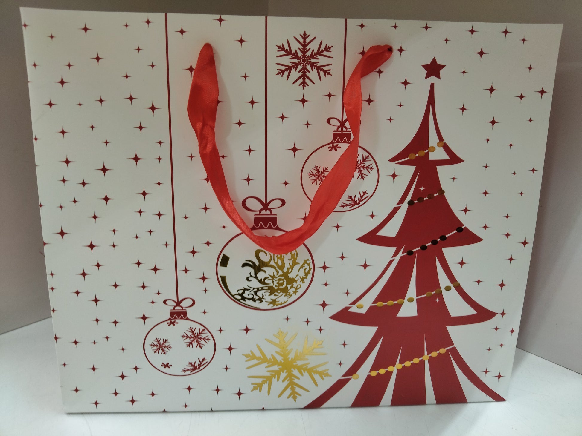 Lahjakassi 32+11x26cm, Joulupallot punainen