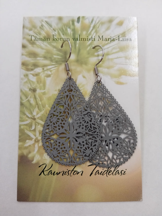 Keveät metalliset käsityönä valmistetut korvakorut. Nikkelivapaat. Kokonaiskorkeus n. 6cm.